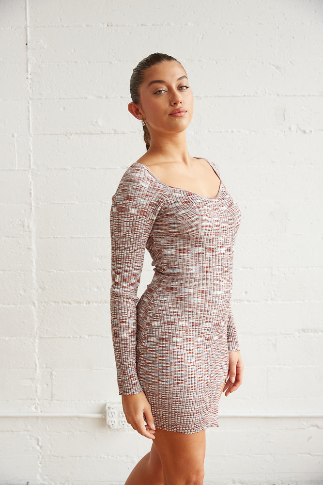 Hey babe, meet the Elsie Knit Mini Dress! This flirty piece is complete with an open sweetheart neckline, a side slit detail for a peek of leg, and a soft rib knit fabric for a flattering silhouette. Available in a brown.