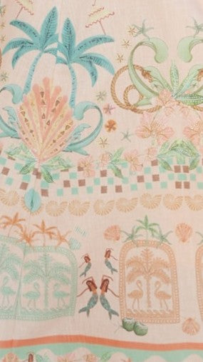 The Nalita Mini Dress in Aurora Print features a refined collared design with fabric-covered buttons and elegant half balloon sleeves finished with shirred cuffs. A detachable waist tie adorned with gold bead details accentuates your silhouette, while the tiered skirt adds graceful movement. Perfect for sophisticated occasions, this dress blends classic charm with subtle, modern touches.