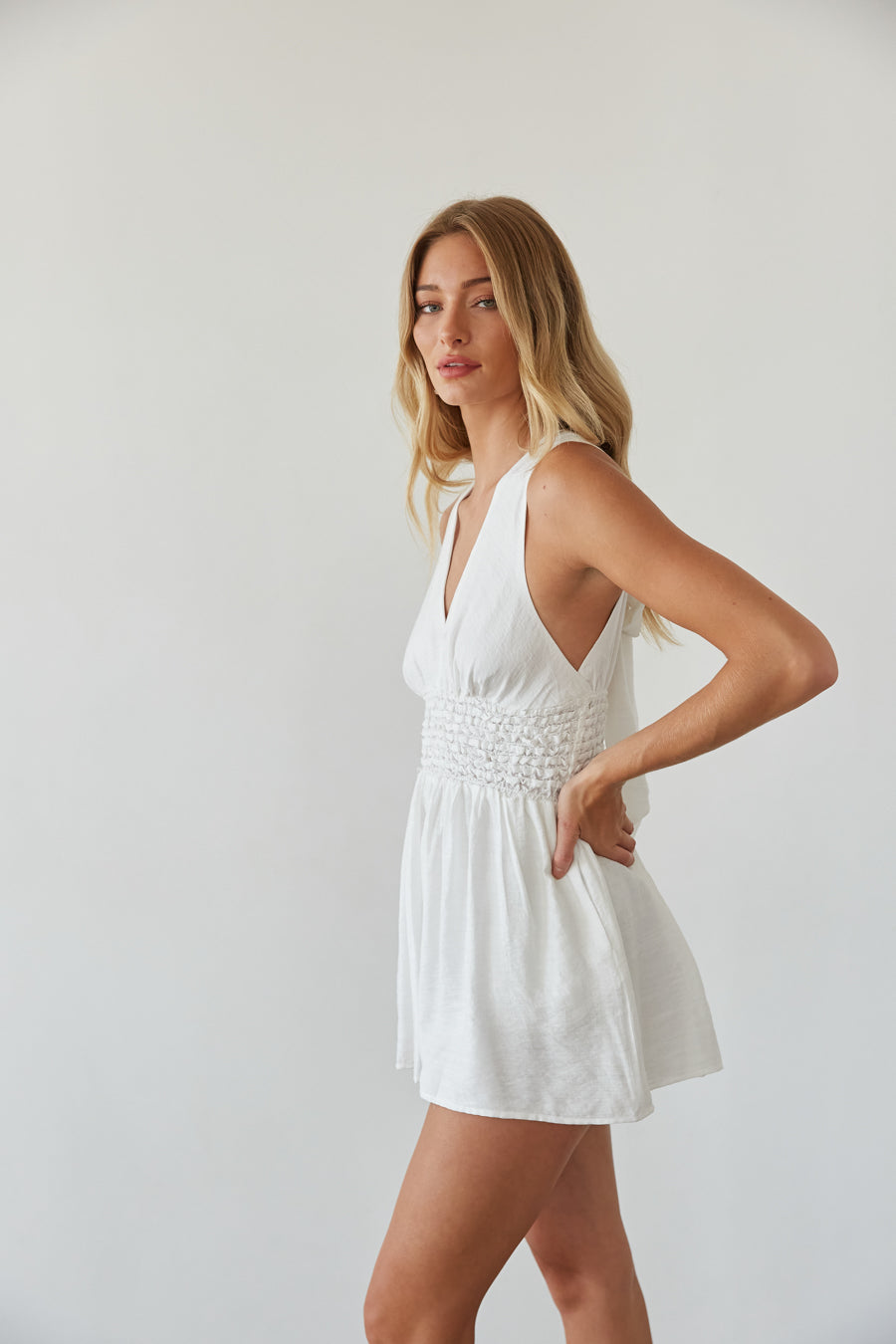 No such thing as summertime sadness in the Skyla Tie Back Romper! This adorable romper features a V-neckline, elastic smocked waist, and an open back tie detail. Finish off the look with your favorite !