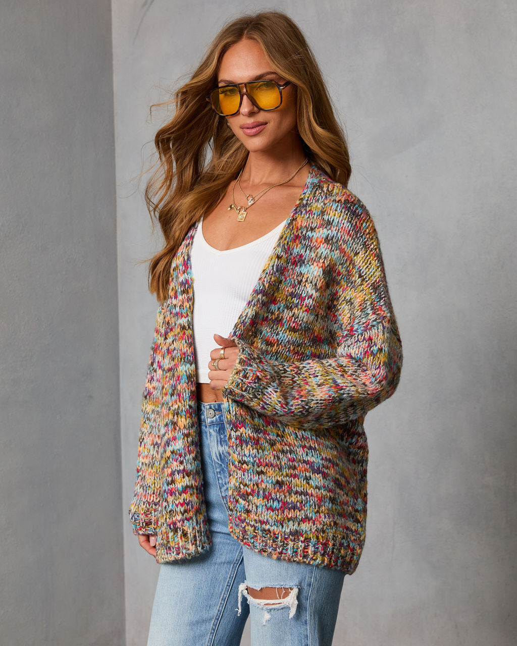 Brighten up any room with the Soft Energy Multi Color Open Front Cardigan. This vibrant, mood-boosting piece features a chic multicolor knit fabric that feels both fresh and exciting. Its comfortable stretch fit drapes effortlessly, creating a look that's both relaxed and stylish. The simple open-front design makes it the perfect layer for breezy afternoons or spontaneous coffee dates. Add this colorful, confidence-boosting essential to your wardrobe and make everyday dressing a celebration.