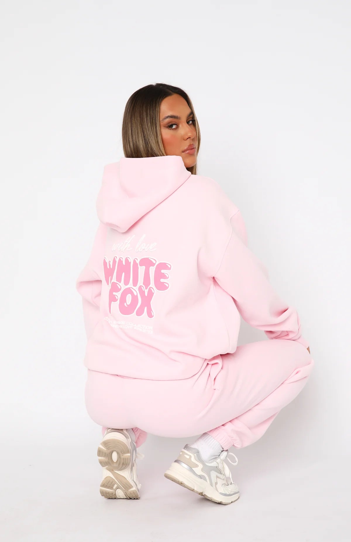 Stay seriously comfy in new, With Love 8.5! The With Love Always Oversized Hoodie Baby Pink is an oversized fit and features elasticated ribbed cuffs & hem, hood, soft fleeced fabric for extra comfort and a printed logo front side and centre back. Bundle up and complete the set with the With Love Sweatpants in Baby Pink for a look worthy of your night in.